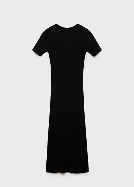 Cuello Redondo Detalle de Abertura Detalle Nudo Diseño Entallado Diseño Midi Manga Corta Tejido de Punto de Canalé - 87095753_99.