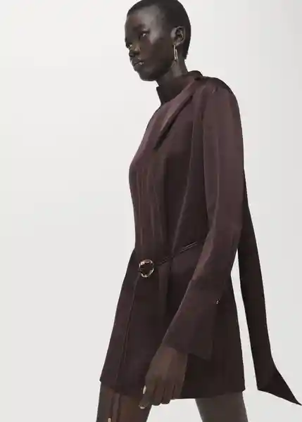 Adorno de Fular en el Cuello Cierre de Cremallera en la Parte Posterior Cinturón Decorativo Cuello Alto Diseño Corto Diseño Recto Esta Prenda Pertenece a Nuestra Colección de Fiesta y Evento Diseñada Para Elevar Tus Looks en Ocasiones Especiales Exclusivo Online Manga Larga Tejido Satinado - 27051284_30.