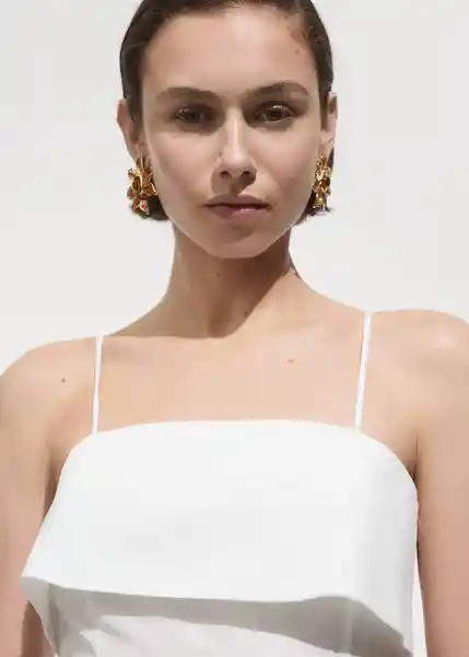 Cierre de Cremallera en la Parte Posterior, Cinturón Decorativo, Diseño Evasé, Diseño Midi, Escote Cuadrado, Escote Vuelto, la Modelo Mide 181 cm y Lleva Una S, Sin Mangas, Tejido 100% Algodón, Tirantes Finos - 77050384_01.