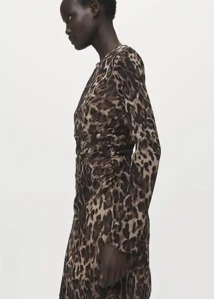 Cierre de Cremallera en la Parte Posterior Cuello Redondo Detalle Fruncido en la Cintura Diseño Corto Diseño Entallado Esta Prenda Pertenece a Nuestra Colección de Fiesta y Evento Diseñada Para Elevar Tus Looks en Ocasiones Especiales Estampado Animal Print Estampado de Leopardo Forro Interior Manga Larga - 27081246_30.