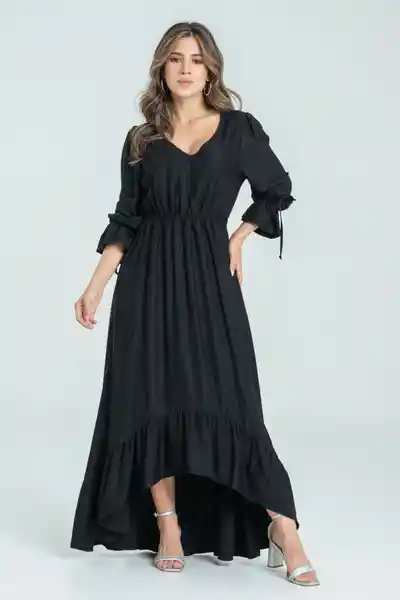 Largo en Chalis Fondo Entero Escote en V Manga Larga Con Jareta y Túnel Bolsillos Largo Con Corte Asimétrico.
