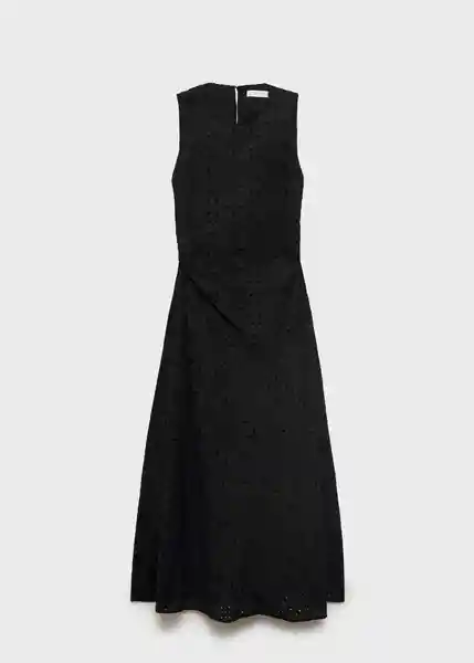 Abertura en la Espalda Cierre de Cremallera en la Parte Posterior Cintura Drapeada Cuello Redondo Detalles Calados Diseño Evasé Diseño Midi Forro Interior Lazo Decorativo en la Espalda Motivos Bordados Sin Mangas Tejido de Algodón - 87019067_99.