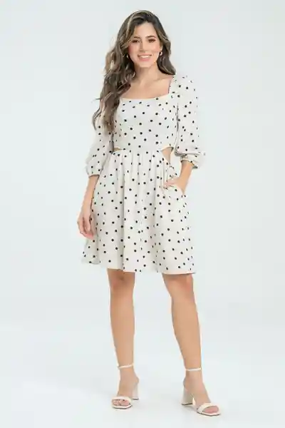 En Lino Estampado Escote Recto Manga 3/4 Con Elástico en Puño y Hombro Aberturas Mini Decorativas en Laterales de Cintura Ajusta en Busto y Cintura Cierre en Posterior Bolsillos Laterales.