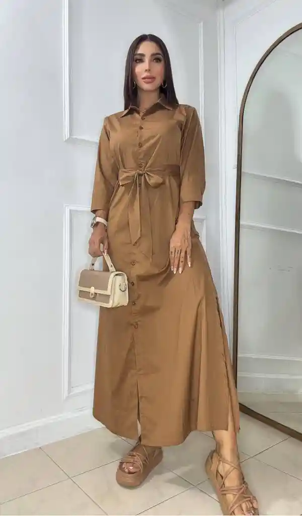 Descubre el equilibrio perfecto entre frescura y sofisticación con nuestro Vestido Camisero en Popelina. Es la prenda ideal para quienes buscan un look impecable, estructurado y cómodo a la vez. Su color camel evoca una estética natural y lujosa, perfecta para cualquier temporada.