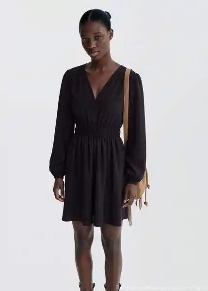 Cuello Pico Diseño Corto Manga Larga Con Puños Elásticos y Fruncidos Panel Fruncido en la Cintura Tejido de Viscosa Tejido Fluido - 17075791_56.