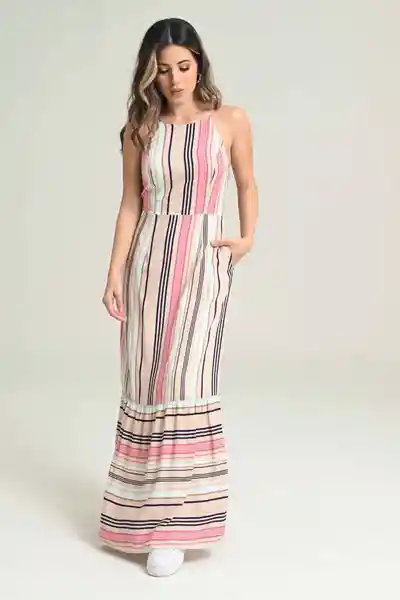 Largo en Chalis Estampado Cuello Halter de Tiras Con Bolero en el Ruedo Silueta Semi - Ajustada.