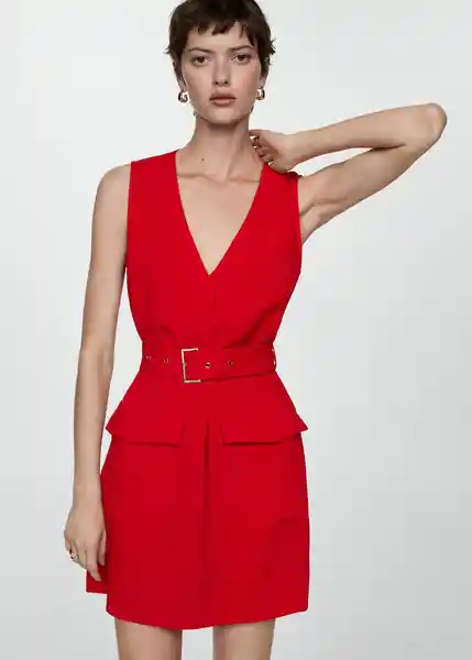 Cinturón Decorativo, Cuello Pico, Diseño Corto, Diseño Recto, Disponible Plus, Dos Bolsillos de Solapa en la Parte Delantera, Sin Mangas, Tejido Fluido, Tirantes Anchos - 77023272_70.