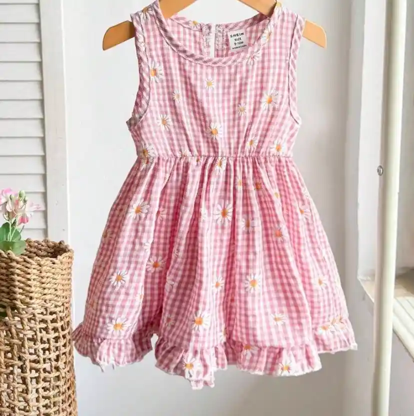 Vestido Rosa Cuadros con Margaritas para Bebé Niña – Estilo Veraniego Talla 9-12 meses 74-80 cm