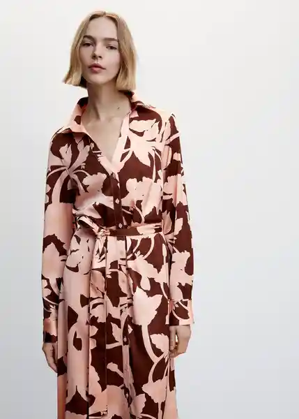 Cierre Delantero Con Botones Colección Fiesta y Ceremonia Cuello Camisero Pico Diseño Evasé Diseño Midi Estampado Floral Lazo Ajustable en la Cintura Manga Larga Con Puños Abotonados Tejido Fluido Tejido Satinado - 47054025_82.