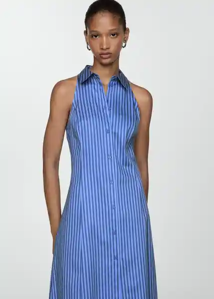 Cierre Delantero Con Botones, Cuello Camisero, Diseño Midi, Diseño Recto, Estampado de Rayas, Lazo Ajustable en la Espalda, Sin Mangas, Tejido 100% Algodón - 77063275_52.