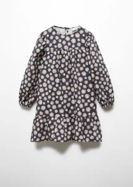 100% Algodón Cierre de Botón en la Parte Posterior Cuello Redondo Diseño Corto Estampado de Flores Manga Larga Volante en el Bajo - 57044420_92.