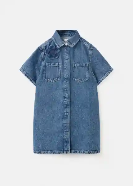 Cierre Delantero Con Botones Cuello Camisero Detalle de Flor en Relieve Diseño Corto Diseño Recto Dos Bolsillos de Parche en el Pecho Manga Corta Tejido 100% Algodón Tejido de Denim - 27094415_Tm.