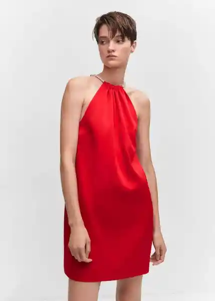 Cierre de Cadena y Mosquetón Colección Fiesta y Ceremonia Cuello Halter Detalle Cuello Rígido Metálico Detalle de Strass Diseño Corto Diseño Recto Sin Mangas Tejido Fluido - 57083818_70.