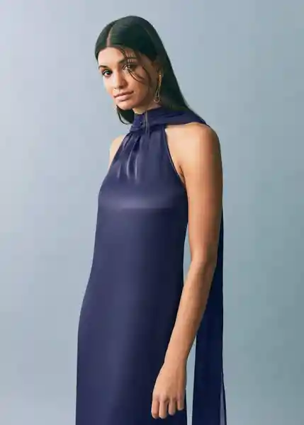 Abertura Posterior en el Bajo Adorno de Gasa Cierre de Botones en la Parte Posterior Cierre Oculto de Cremallera en la Parte Posterior Colección Fiesta y Eventos Cuello Halter Diseño Maxi Largo Diseño Recto la Modelo Lleva Una Talla L y Mide 177 cm Sin Mangas Tejido Fluido Con Acabado Satinado - 87026365_57.