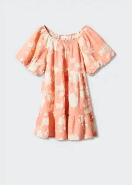 100% Algodón Cuello Redondo Detalles Fruncidos Diseño Corto Estampado Floral Manga Ancha Manga Corta Volantes en el Bajo - 57040369_87.