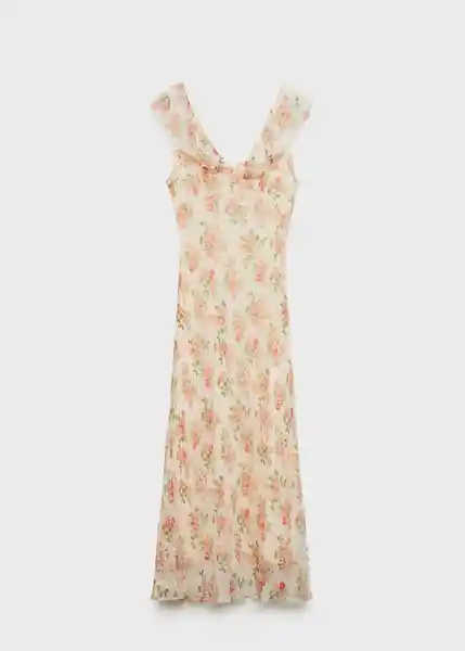 Cierre de Cremallera en la Parte Posterior Cinturón Tipo Lazo en la Cintura Cuello de Pico Detalle de Volantes en el Cuello Diseño Midi Diseño Recto Estampado Floral Forro Interior Sin Mangas - 87019069_05.