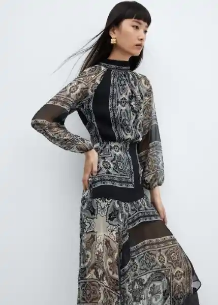 Bajo Asimétrico Cierre de Lágrima en la Parte Posterior Cierre Lateral Cuello Cisne Diseño Largo Diseño Semitransparente Disponible Plus Manga Abullonada Manga Larga Con Puños Elásticos Tejido de Gasa Tejido Fluido - 57047756_99.