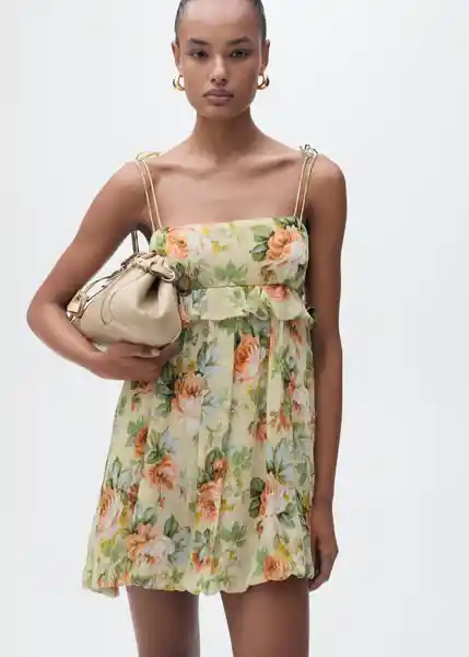 Cierre de Cremallera Lateral Cuello Escotado Detalle de Volante Diseño Corto Diseño Recto Estampado de Flores Forro Interior Tejido de Gasa Tirantes Finos Dobles - 87055766_05.