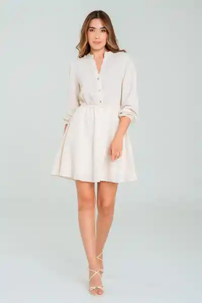 Corto en Algodón Con Textura Cuello Nerú Media Perilla Cintura Resortada Falda Corta Forrada Manga Larga Con Elástico en Puño.