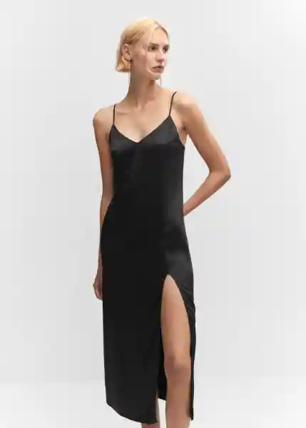 Abertura Lateral Cuello Escotado Espalda Con Escote Sin Cierre Tejido Fluido Tejido Satinado Tirantes Finos Ajustables - 57083800_99.
