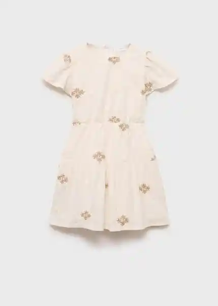 Abertura Posterior Cierre de Botón en la Parte Posterior Cuello Redondo Detalles Bordados Diseño Corto Diseño Plisado Diseño Recto Manga Corta Tejido Algodón y Lino - 87045945_02.
