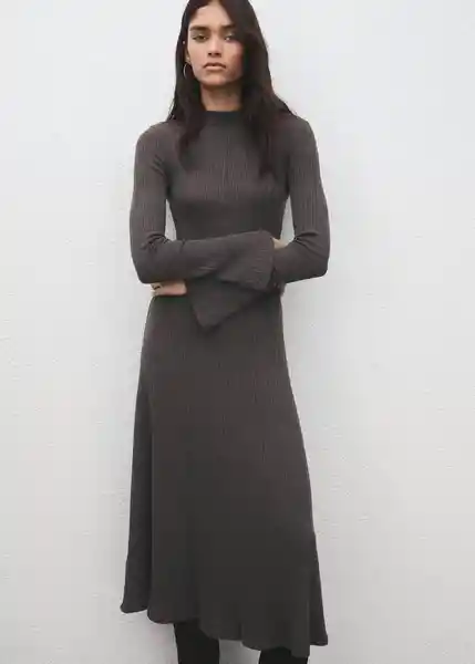 Cuello Perkins Diseño Entallado Diseño Midi Diseño Recto Manga Larga Acampanada Sin Cierre Tejido de Punto en Canalé - 27051317_35.