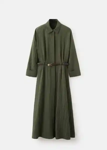 Cierre Delantero Con Botones Cuello Camisero Detalle Cinturón en la Cintura Diseño Evasé Diseño Largo Disponible Plus Manga Tres Cuartos Trabillas - 27015829_37.