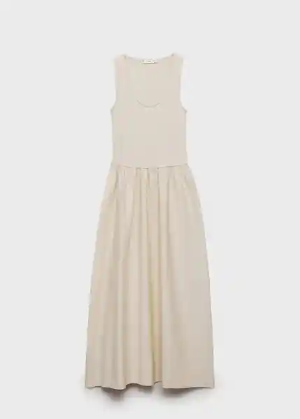 Cuello Escotado Diseño Combinado Diseño Evasé Diseño Midi Panel Fruncido en la Cintura Sin Cierre Sin Mangas Tejido de Algodón Tirantes Anchos - 87057187_05.