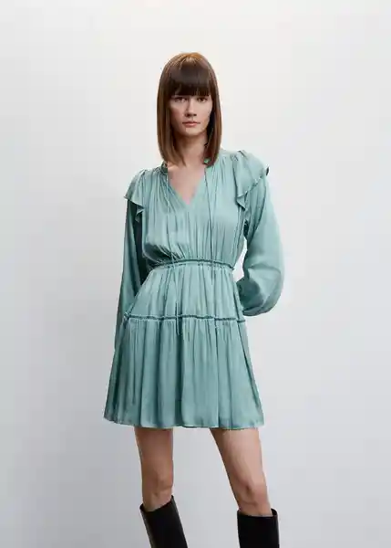 Cintura Con Goma Elástica Cuello Mao Cuello Pico Con Lazo Detalle de Volante en la Manga Diseño Corto Diseño Volantes Forro Interior Manga Larga Con Puños Abotonados Sin Cierre Tejido Fluido - 47085856_50.