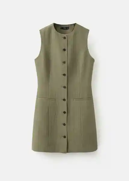 Cierre Delantero Con Botones Cuello Redondo Diseño Corto Diseño Recto Dos Bolsillos de Ribete Delanteros Sin Mangas Tirante Ancho - 27015832_43.