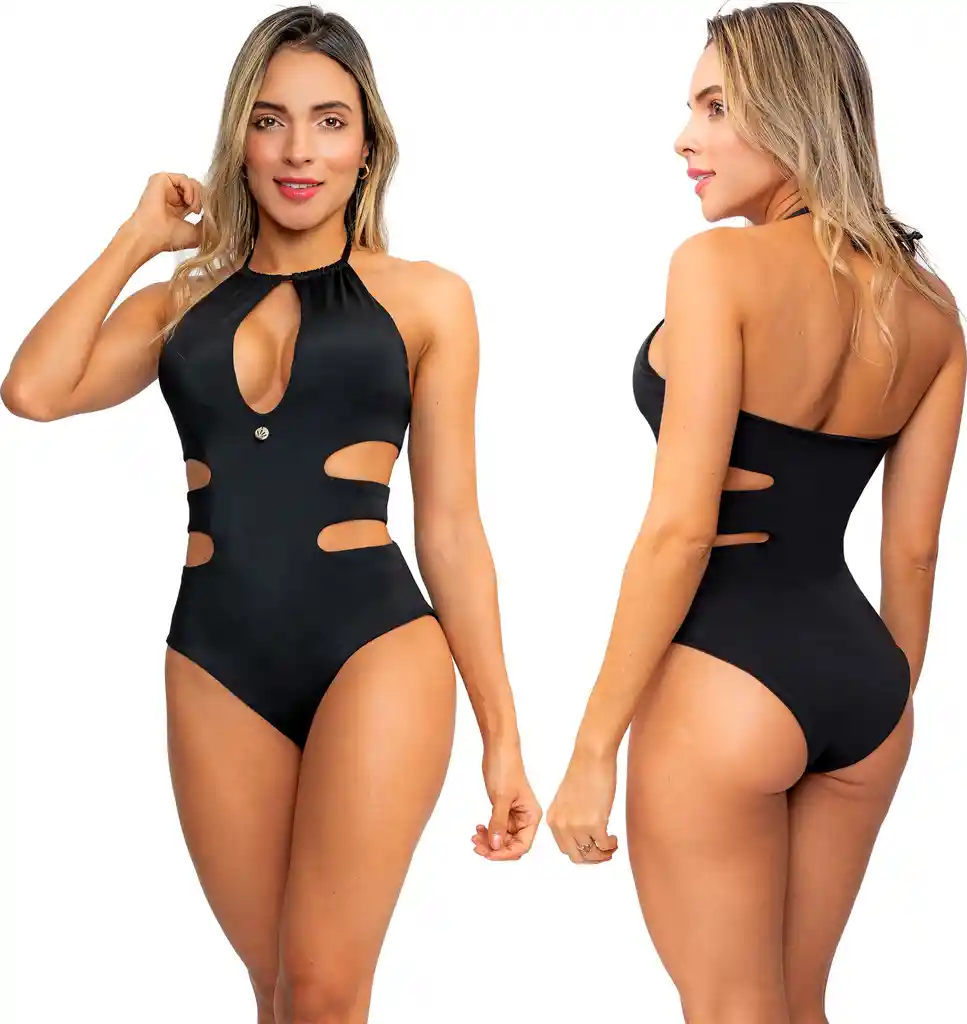 Enterizo PRAIE REF: 1644 Pasarela (Negro): 78% Poliéster 22% Spandex Forro Interno: 89% Poliéster 11% Spandex Copas internas Removibles Amarre al cuello 1 Pieza Producto diseñado y producido en Colombia