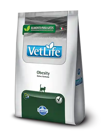 Alimento coadyuvante seco indicado para gatos con exceso de peso. Farmina Vet Life Natural Feline Obesity es un alimento coadyuvante seco indicado para gatos adultos para la reducción del exceso de peso corporal. La densidad energética reducida y el elevado contenido de fibras convierten a Vet Life Natural Feline Obesity indicado para el control de la obesidad. RESTRICCIONES Y OTRAS RECOMENDACIONES: Vet Life Natural Feline Obesity es contraindicado en la gestación, lactancia, para gatitos en crecimiento y gatos con insuficiencia hepática o renal.