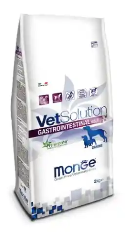 Monge Vetsolution Gastrointestinal Canine es un alimento dietético completo formulado para la reducción de trastornos de la absorción intestinal aguda en perros adultos.