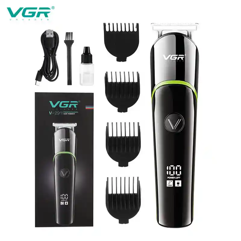 Máquina Recortadora Eléctrica Pantalla LCD Inalámbrica/ VGR V-291 - Recortadora de cabello blanco cabeza de aceite tallada - Cabezal de corte de acero manchado, afilado, nunca corta el pelo, no daña la - piel, bajo nivel de ruido - Tensión: 100-240v/5w - Tamaño: 16*4cm - Recargable por USB, carga de 2 horas dura 120min - No lavable - Límite peine: 9mm 6mm 3mm 12mm - Bajo nivel de ruido