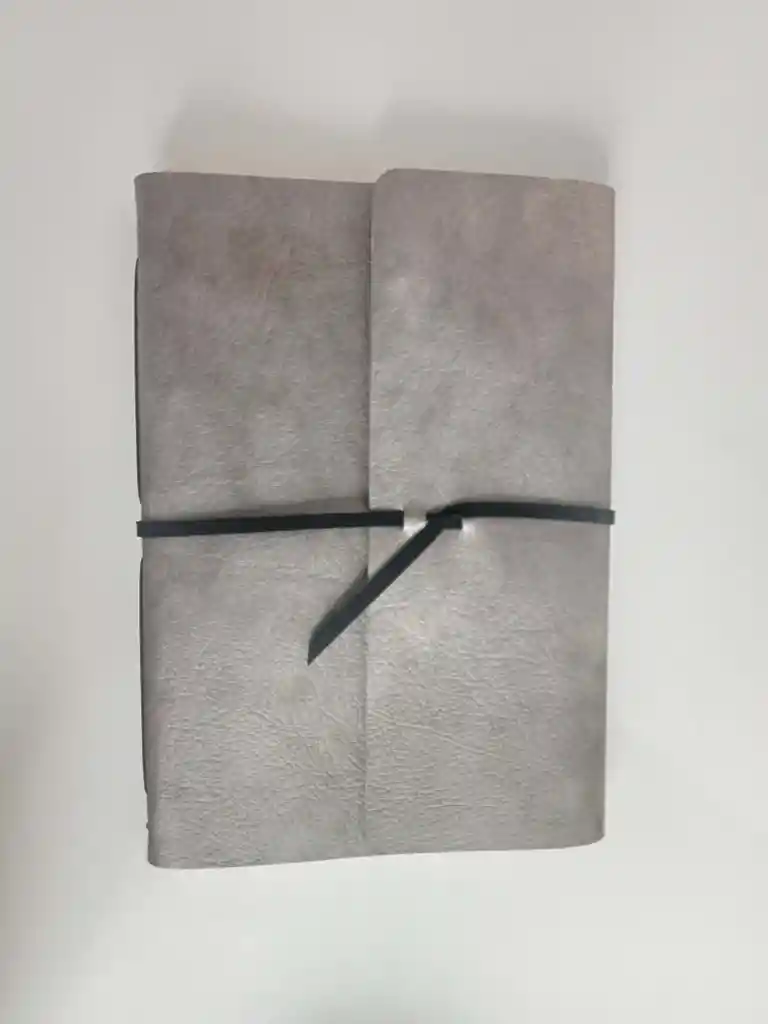 Libreta viajera en cuerina color plomo / 100 hojas ecológicas color natural / Costura hecha a mano color negro / Interior con la misma cuerina / Cierre con cordón negro / Tamaño A5 = 22cm * 15.5cm / Encuadernación artesanal 100% hecha a mano, producto local