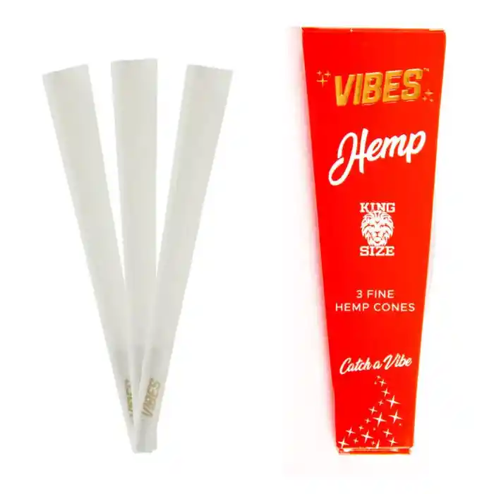 3 conos Vibes tamaño King Disponible en arroz, cáñamo o ultrafino. Humo de papel reducido Quema lenta y uniforme. Mejora tus sesiones de hierbas secas con los Vibes Cones - King Size. Elija entre conos de arroz, cáñamo o ultradelgados para brindar un sabor limpio, incluso el disfrute de hierbas secas ardientes. Estos son conos King Size, capaces de caber alrededor de 1 gramo de hierba seca, fantásticos para grupos de 3-5 personas. Este producto puede ser utilizado para productos que contienen nicotina o tabaco. El tabaco y la nicotina son nocivos para la salud. Ley 30 de 1986. Verificar condiciones de uso, indicaciones y contraindicaciones en la etiqueta. Prohibida la venta a menores de edad