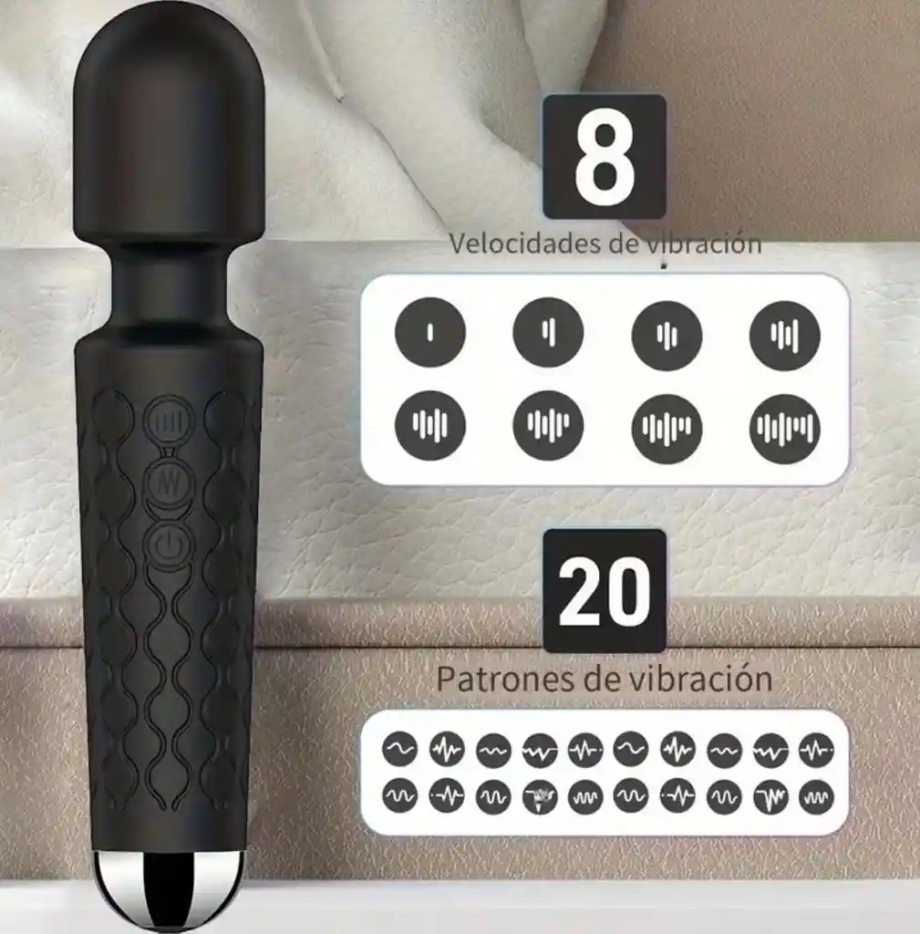 Vibrador de 20 patrones de vibración y 8 velocidades, Silencioso, Pequeño y Ligero, Portátil, Cabeza Suave y Flexible, Juguete Sexual, Carga USB.