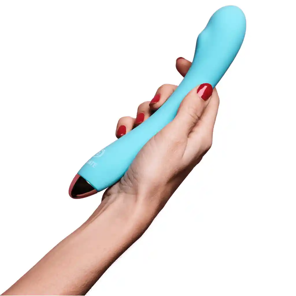 Vibrador especialmente diseñado para el punto G, con 8 vibraciones diferentes para descubrir nuevas sensaciones vaginales y no solo... ¡sensaciones! ¡Se ha hablado mucho del punto G! ¿Existe o no? Contrariamente a lo que imaginamos, no se trata de un lugar aislado y mágico, sino de una zona de tránsito entre la vagina y el clítoris, ubicada en la pared anterior de la vagina. Para acabar con los prejuicios y porque la investigación arroja luz sobre la sexualidad femenina, GOLIATE te ofrece My Pleasure, un juguete sexual ergonómico especialmente diseñado para estimular esta zona clave, el punto de encuentro de la vagina y el clítoris dentro del cuerpo. Un juguete sexual que te conoce bien. Para invitarte a descubrir nuevas sensaciones vaginales, especialmente a través de la estimulación del punto G, GOLIATE te ofrece un juguete adaptado a tu anatomía. My Pleasure tiene una ligera protuberancia que presiona específicamente tu punto G durante la penetración, cuya presión puedes medir con sus 8 modos de vibración. Por supuesto, My Pleasure tiene más de un as bajo la manga: también puedes usarlo para estimular tu vulva, el glande de tu clítoris o incluso tus pechos. Por supuesto, también puede ser utilizado como un vibrador clásico, tanto por mujeres como por hombres, proporcionando momentos placenteros llenos de intensidad y mucho… ¡color! Instrucciones de uso: Cargue My Pleasure antes del primer uso. Siga las instrucciones y disfrute. Es necesario utilizar un lubricante a base de agua para acompañar el uso del producto. Limpie a fondo después de usarlo con el limpiador desinfectante 2 en 1 para juguetes sexuales de GOLIATE. Características: Color: Azul turquesa. Material: Silicona de grado médico de primera calidad Funciones: 8 vibraciones. Tamaño del producto: 22,5 × 3,4 cm Batería: Recargable. Resistente al agua (también se puede usar en la ducha). Utiliza app para control a distancia Es posible manejarlo desde el mismo vibrador o de tu celular