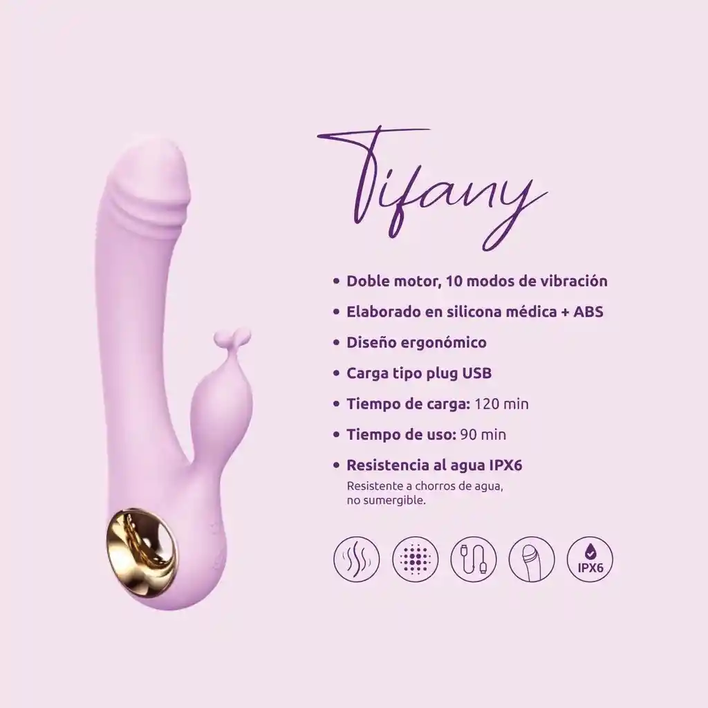 Doble cabezal con vibración 10 modos de vibración Material: Silicona + ABS Diseño ergonómico Carga tipo plug USB Resistente a chorros de agua, no es sumergible (IPX6)