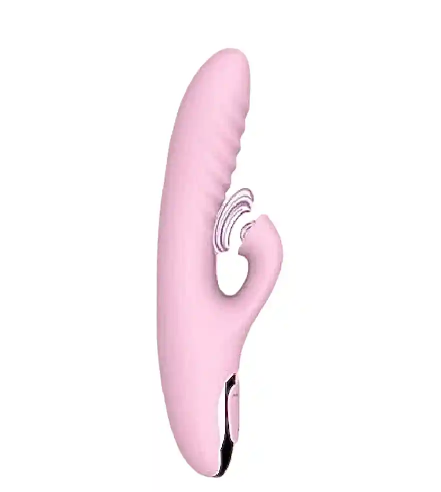 Largo total 21cm • Diámetro 4cm • Material silicona • Succionador de clitoris • Estimulador punto G • carga USB Color FUSCIA