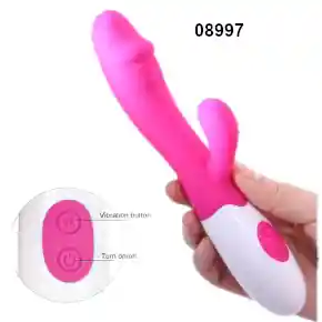 Vibrador de doble estimulación, fabricado en silicona medica, resistente al agua, 10 modos de vibración, funciona con 2 baterías AAA.