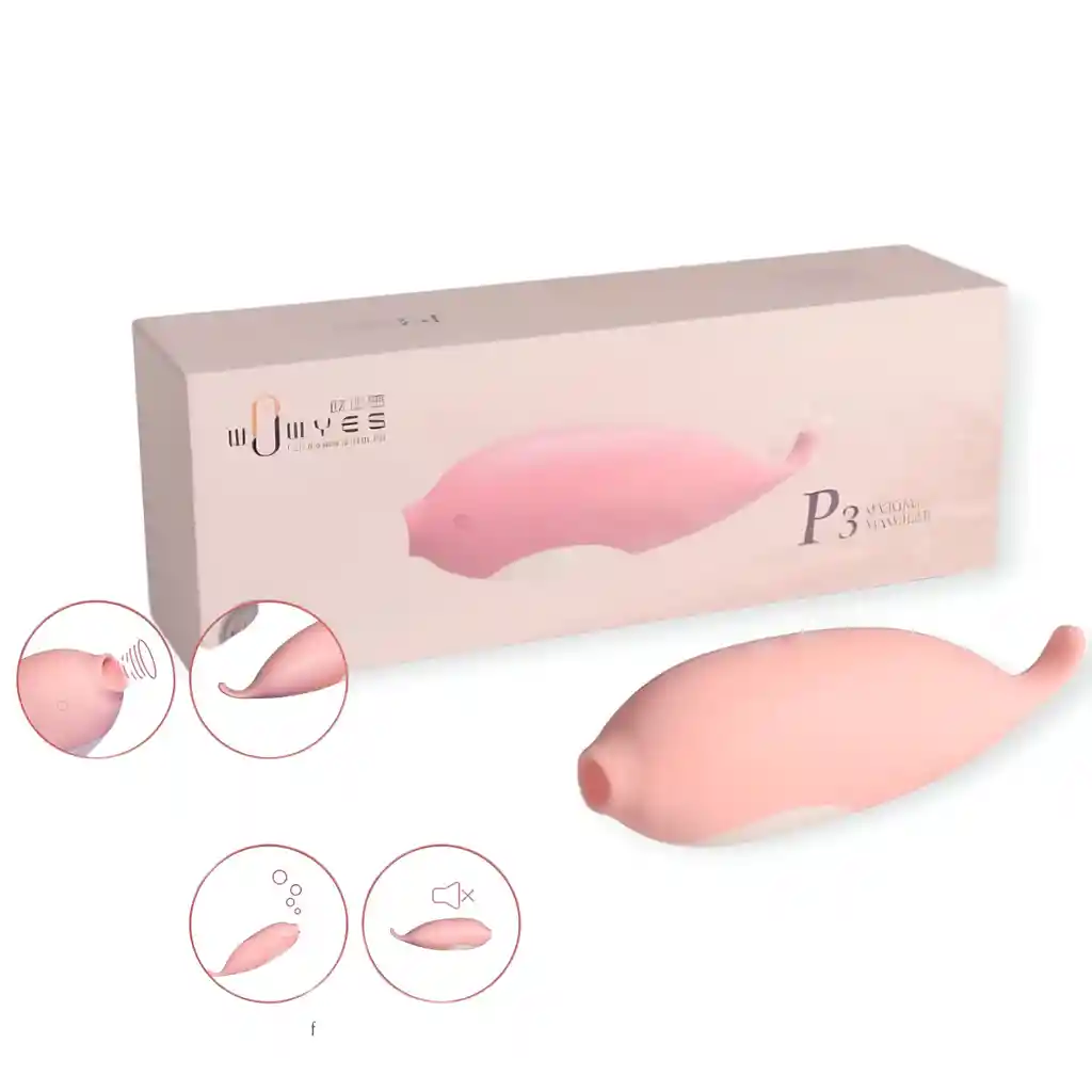 Succionador y vibrador p3 sucking massager 10 modos de succión (boca) 10 modos de vibración(cola) Carga magnética Recargable Resistente al agua Silicona medica Medidas boca 1.2cm Cola 4.02cm Ancho del juguete 4,84cm Largo del juguete 14,9 cm