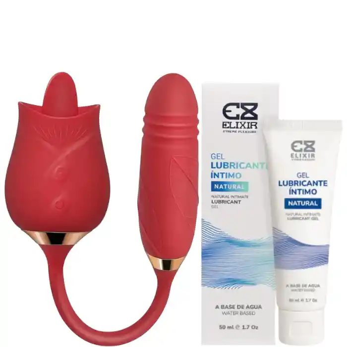experimenta el placer en su máxima expresión, nuestro innovador vibrador doble! diseñado con dos extremos para satisfacer todas tus necesidades, un extremo cuenta con una potente bala vibradora y el otro con una rosa que contiene una lengua para simular una estimulación oral perfecta. fácil de usar, simplemente oprime el botón de encendido durante 2 segundos. utiliza el mismo botón para controlar la bala vibradora y utiliza el otro botón para activar la lengua. ambos extremos cuentan con motor diferente que se controlann por separado para una experiencia personalizada. nunca te quedarás sin energía ya que es recargable con medio de cable usb. ¡no esperes más y vive la experiencia lotus! contenido: • vibrador con bala lotus • cable usb para carga • manual de uso material: silicona + plastico abs medidas: • largo 30 cm • profundidad 5,5 cm •ancho 5,5 cm presentación: 2 extremos para doble placer • 10 niveles de intensidad en cada uno de los extremos • recargable Lubricante Íntimo Natural Elixir Fórmula neutra y segura para el cuidado íntimo diario. El Lubricante Íntimo Natural de Elixir ha sido formulado específicamente para respetar el equilibrio de la zona íntima. Su composición a base de agua, sin fragancia, colorantes ni saborizantes, reduce el riesgo de irritaciones, alergias o alteraciones del pH vaginal, haciéndolo ideal para el uso diario. Recomendado por ginecólogos, su textura ligera y sedosa proporciona una lubricación eficaz de larga duración, minimizando la fricción sin necesidad de reaplicación. Su fórmula es compatible con el uso de preservativos de látex y juguetes sexuales. Beneficios clínicos y funcionales: Fórmula segura: libre de fragancias, colorantes y saborizantes, minimiza reacciones adversas. Base acuosa: no interfiere con la integridad del látex ni con materiales de juguetes sexuales. Lubricación prolongada: reduce la fricción y el riesgo de microlesiones sin necesidad de reaplicación constante. Versatilidad de uso: indicado para relaciones sexuales, exploración con juguetes, revisiones médicas o como hidratante íntimo. El Lubricante Íntimo Natural de Elixir es una herramienta de cuidado íntimo diario que prioriza la seguridad, la eficacia y el bienestar. cantida 50 ml textura gel