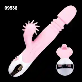 Vibrador de doble estimulación, fabricado en silicona medica resistente al agua, cuenta con función de empuje, y estimulador de clítoris en forma de lengua , 12 modos de vibración mas 12 modos de lamido. recargable.