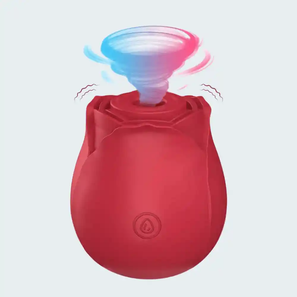 Vibrador succionador tipo rosa 3 en 1 con estimulación de clítoris, punto G y pezones. Fabricado en silicona suave y ABS, con diseño ergonómico, resistente al agua y funcionamiento silencioso. Cuenta con 7 velocidades y 10 modos de vibración para una experiencia intensa y personalizada. Compacto, recargable y perfecto para explorar el placer con total discreción.