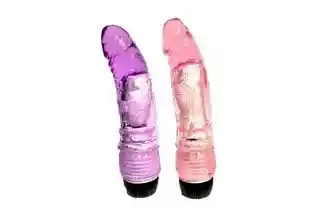 Vibrador siliconado, textura suave, vibraciones graduables, trabaja con pilas, medidas 20 cm. colores surtidos