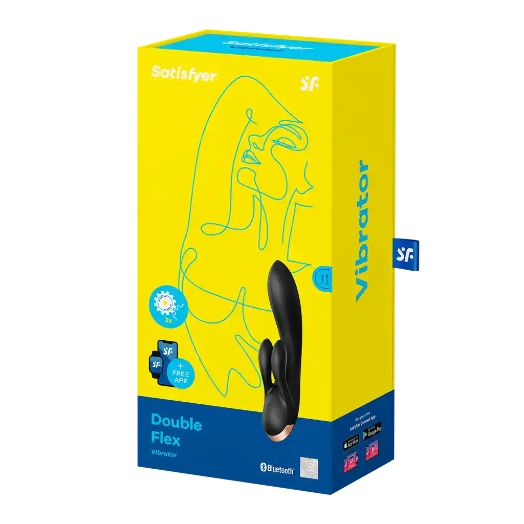 Con 3 motores de potencia, Double Flex brinda la misma atención estimulante al punto G, el clítoris y los labios externos. Gracias a la tecnología Silicone Flex, el dispositivo es especialmente cómodo y, al mismo tiempo, proporciona vibraciones emocionantes a través de la aplicación. Double Flex de Satisfyer estimula tanto el punto G como el clítoris con 3 motores. El conejo vibrador fabricado con silicona de alta calidad, respetuosa con el cuerpo, es extremadamente flexible y se adapta cómodamente a tus curvas gracias a la tecnología Silicone Flex. También proporciona excitante estimulación de los labios con el estimulador de clítoris dividido. Las potentes vibraciones de tu dispositivo se pueden controlar intuitivamente a través del panel de control, y la aplicación gratuita Satisfyer Connect te ofrece aún más posibilidades mientras juegas, como crear tus propios programas de vibración, vincularte a tu lista de reproducción favorita en Spotify o compartirla con otros usuarios en nuestra comunidad. Gracias al acabado impermeable (IPX7), Double Flex no solo es fácil de limpiar, sino que también se puede utilizar en la bañera u otras zonas húmedas después de un largo día. Para una experiencia especialmente suave, asegúrate de utilizar un lubricante, como el lubricante Satisfyer, disponible en versiones Classic, Silky y Warming. Si el Double Flex alguna vez se queda sin aliento, sus baterías integradas se pueden recargar con el cable de carga USB incluido. Compatible con la App gratuita Satisfyer - Disponible en iOS y Android 3 potentes motores generan vibraciones profundas en todo el juguete. La tecnología Silicone Flex hace que el eje sea suave, liso y extremadamente flexible. Material Silicona de grado médico Contenido Satisfyer Double Flex, Cable de carga USB Presentación Estimulación del clítoris y del punto G. Resistente al agua (IPX7). Modo susurro. Cable de carga USB magnético incluido. También se puede utilizar sin la aplicación.ido. Garantía 1 año Medidas Longitud: 20,1 cm Alto: 4,6 cm Amplitud: 5,3 cm 183,8 gr
