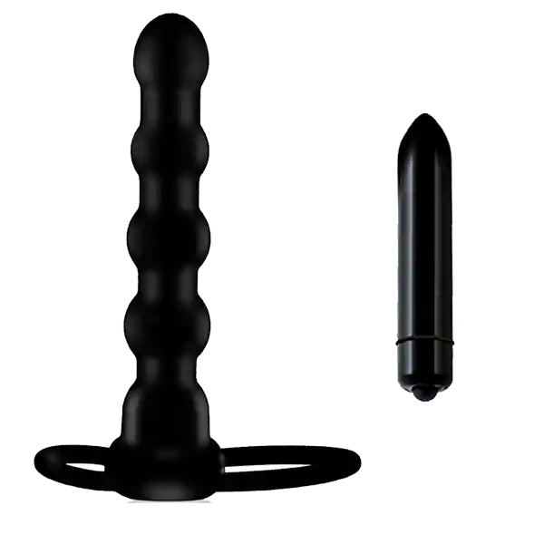 Doble anillo con pene realista y vibracin para practicar la doble penetracin. Material Silicona. Largo 12.75cms . Insertable 9.75cms. Dimetro 2.75 cms Batera 1 pila AAA no incluida.