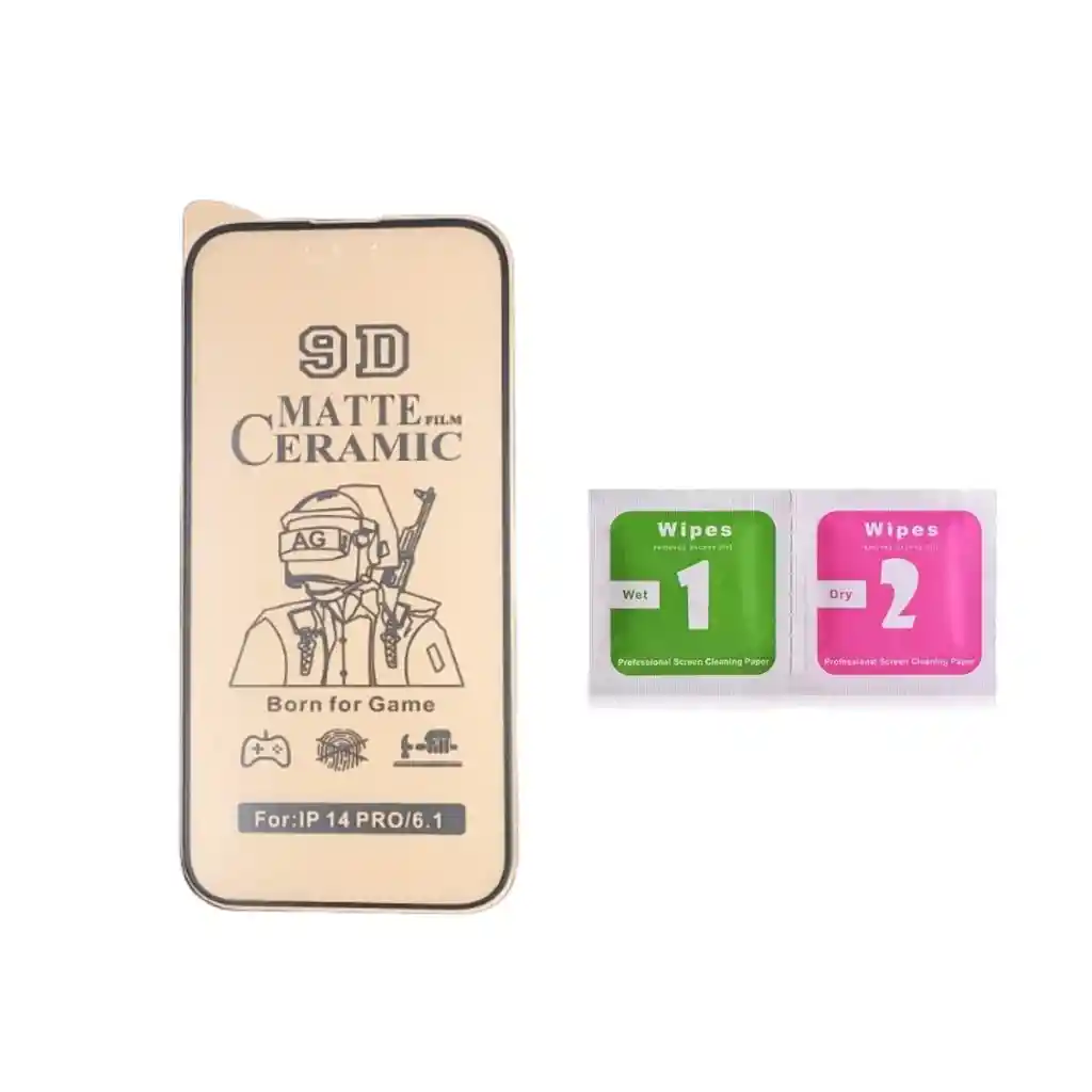 Vidrio Ceramico Pantalla Iphone 14 Pro con sellos de garantía para evitar cambios durante el trayecto.