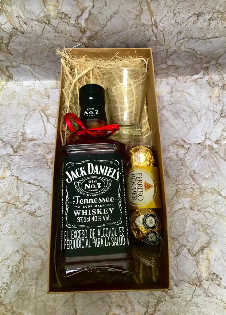 JACK DANIEL´S 370 ML + COPA PEQUEÑA + 3 CHOCOLATES FERREROS
